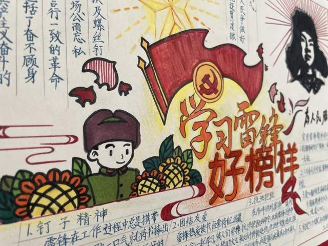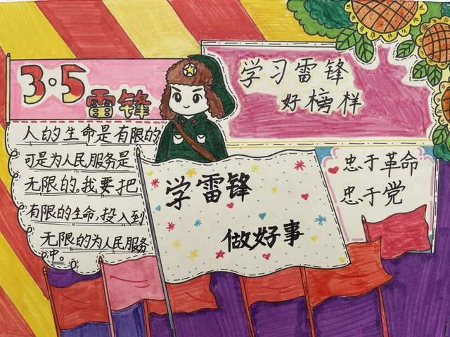 雷锋,中国人民解放军战士,共产主义战士。雷锋对后世影响最大的是以其名字命名的雷锋精神。雷锋精神是为共产主义而奋斗的无私奉献的精神,代表着立足本职、在平凡的工作中创造出不平凡业绩的“螺丝钉精神”,代表着苦干实干、不计报酬、争做贡献的艰苦奋斗精神;归根结底就是全心全意为人民服务的精神。为了引导孩子们在新时代继续弘扬雷锋精神,二、三、四年级进行了以“扬雷锋精神,做时代新人”为主题的环创。通过活动,孩子们学会了在生活中用自己的一言一行践行雷锋精神,雷锋精神将永垂不朽。