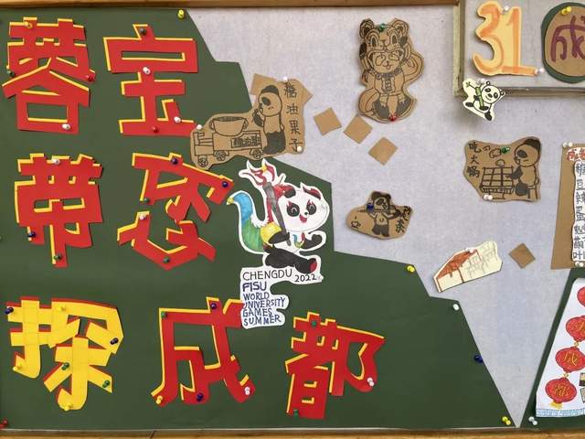 第31届世界大学生夏季运动会将于2022年6月26日在成都举办。成都,自古有“天府之国”的美誉,还是全国十大古都和首批国家历史文化名城,古蜀文明发祥地。为了让孩子们提前感受浓浓的大运会氛围,以小小主人翁的身份迎接大运会、向世界介绍成都,五、六年级进行了以“探寻烟火成都,童心迎接大运”为主题的环创。一字一画,是和美娃们作为蓉城小主人翁的骄傲与自豪。爱成都,迎大运。