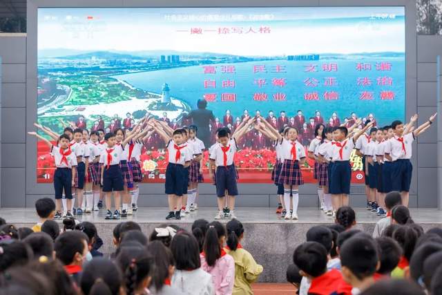 国旗高高扬,国歌声声唱,第五周,同学们继续出发,茁壮成长吧!四川天府新区籍田小学充分利用升国旗仪式开展社会主义核心价值观教育,取得了良好的效果。