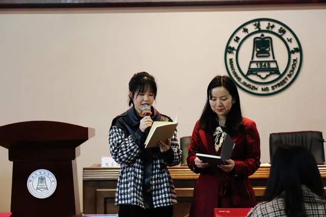 接着是班主任师徒互赠留言,一句句美好的祝福,一声声真诚的感谢,让在场的老师们不禁为之感动。年轻娃儿的成长,离不开经验丰富的“老”班主任们每日每月倾囊相授、悉心指导,这就是传承,这就是警小!