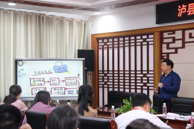 梁家元就《实施思维可视化教学策略助力泸县思维型生本课堂》这一专题内容进行了讲座,从工具观、教育观、教学观、学习观、学科观、系统观,介绍了思维可视化的六观,讲解了思维可视化图示家族,为思维可视化内功训练及应用策略提供了切实可行的路径支持。