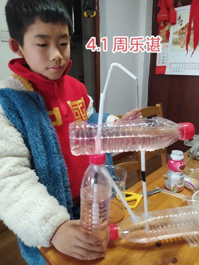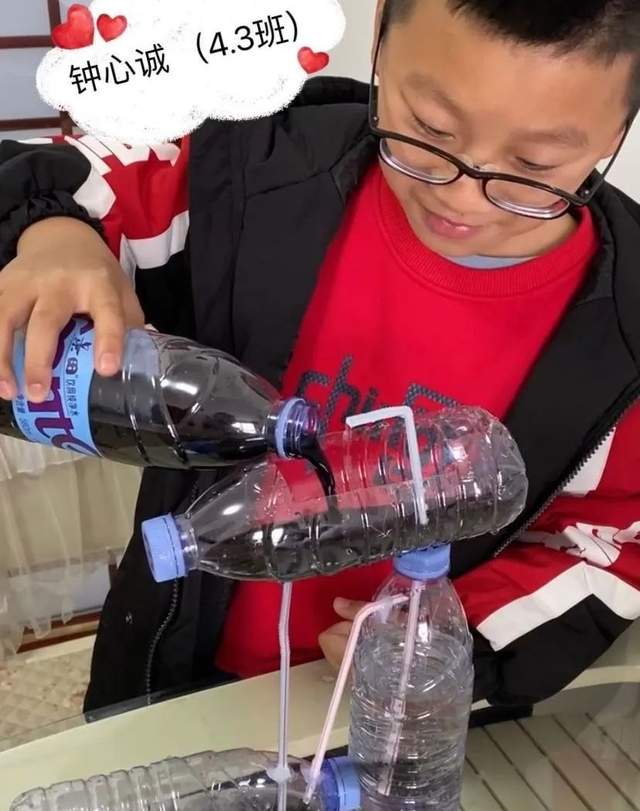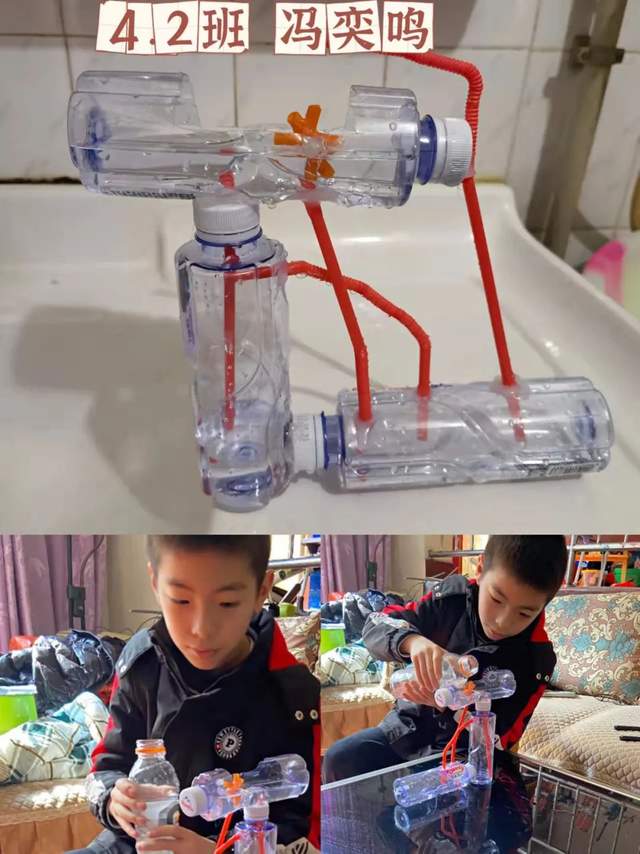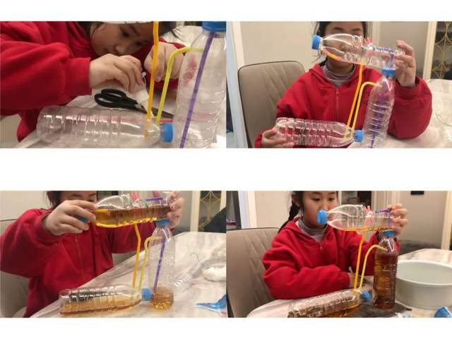 本周末,科学组老师带领同学们一起制作“果汁分你一半(虹吸现象)”、“无限循环小水车”小实验,快来看看他们的作品吧!