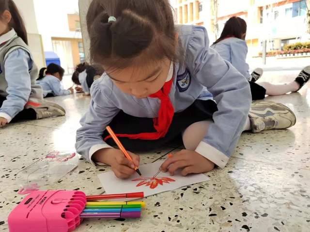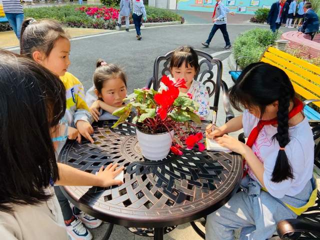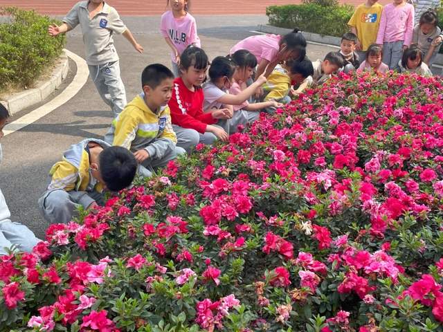 一年级的弟弟妹妹们来美丽的校园寻春打卡啦!