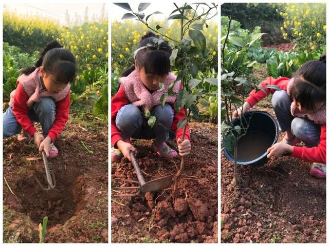 通力合作,你挖坑,我播种,你松土,我浇水,在万物复苏的时节,化身为播种春天的使者,小心翼翼地将一株株橘树幼苗放进坑里,忙得不亦乐乎。