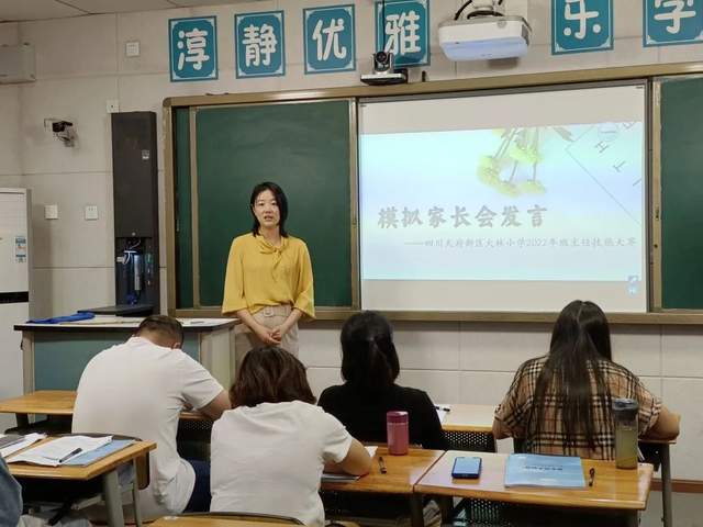 班主任技能大赛分为三个部分。第一部分围绕“双减背景下的自主管理”进行赛课。第二部分班主任现场抽签进行“模拟现场家长会发言”。第三部分班主任现场抽签进行心理案例分析。