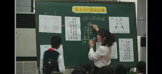 首先由棠湖小学的数学唐琦老师献课《解密两位数乘法》。唐老师呈现了8种不同历史时期、不同国家的两位数乘法运算方式,孩子们深深沉浸其中,自行探索解密,在独立思考与自主探究中渗透了两位数乘法的历史发展与多元数学文化的的绚丽多彩。