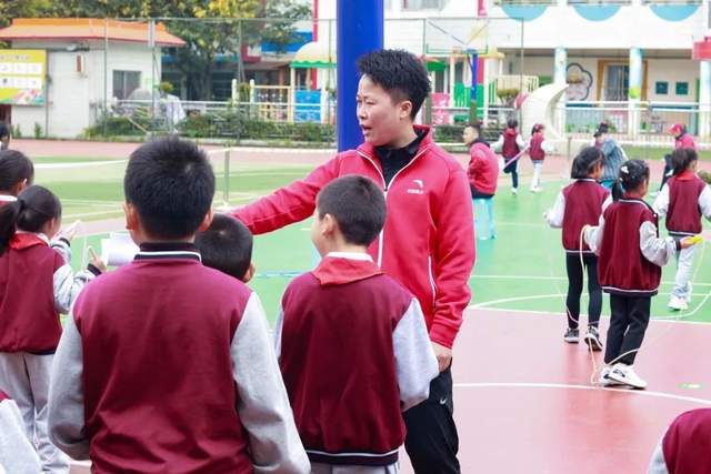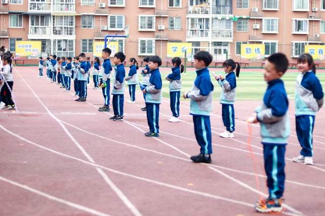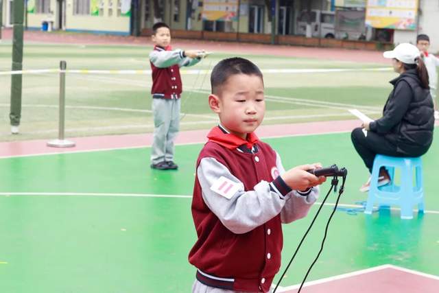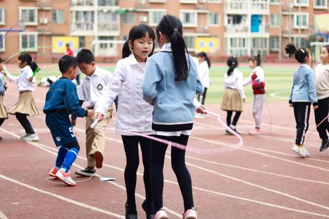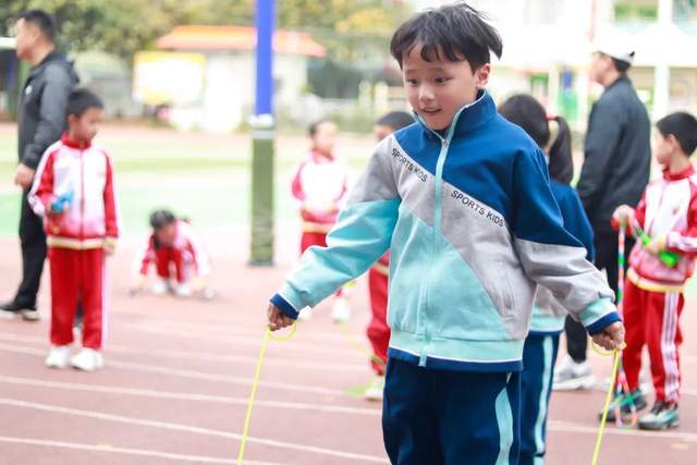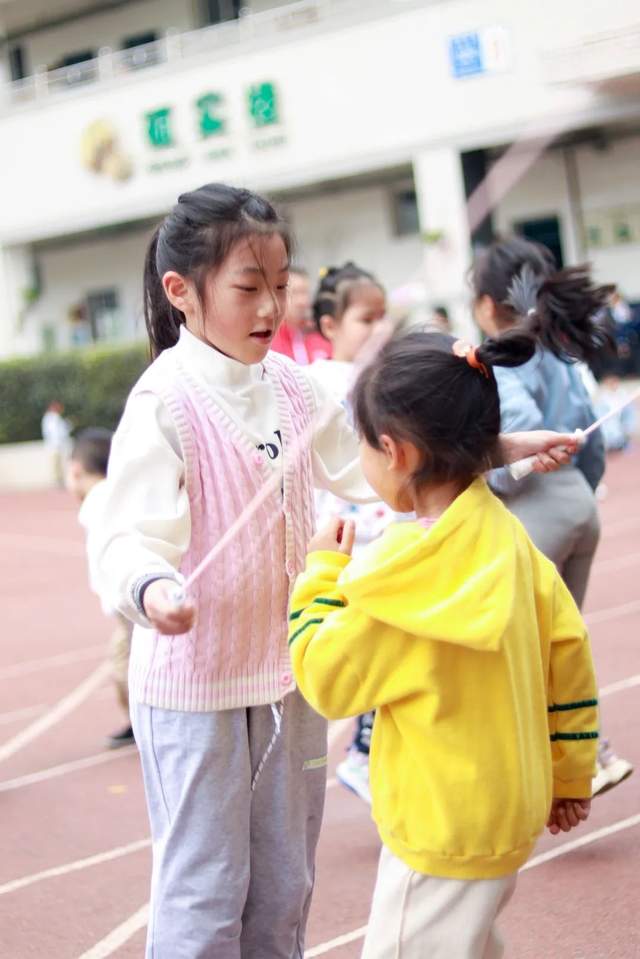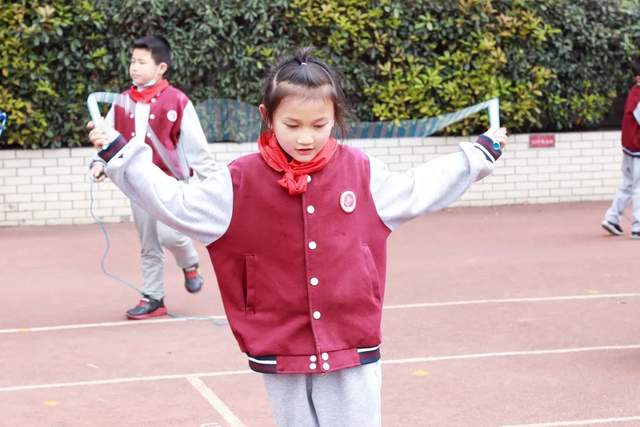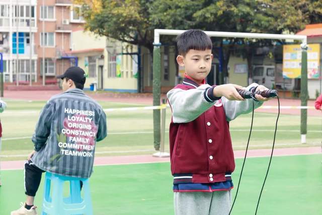 跳绳比赛以班级为单位进行比拼,一二年级共有两个项目,分别是单人一分钟记时跳和双人一分钟记时跳。在单人项目中,每班各派男女各15人参赛,最后取全班平均跳绳个数,在双人记时跳中,每班各派6对选手参加比赛。