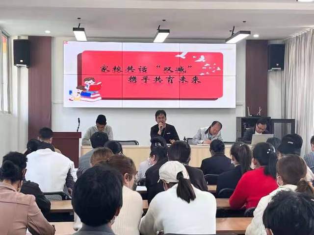 会前,学校给与会家长准备并分发“双减”明白卡,让家长明确“双减”政策,了解我校在“双减”背景下如何开展教育教学,如何以“五育并举”为抓手,做到减负提质。会上,王君校长提出家长要明确自身责任,做好学生榜样。要杜绝出现“生而不养,养而不育”的行为,呼吁家长主动参与到“双减”工作中,陪伴学生成长。