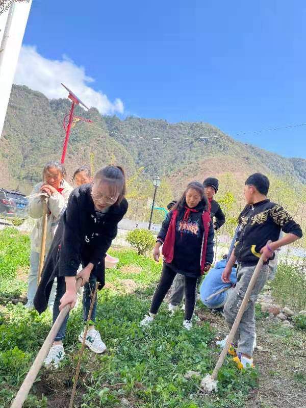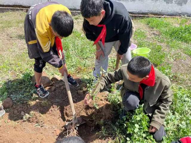 活动中,老师和同学们带着锄头、铁锹、水盆等工具兴致勃勃地来到了校园种植区,大家分工明确,齐心协力,相互配合,从松土、挖坑、栽种、填土到浇水,每一个环节,老师都手把手地教同学们,并提醒孩子们时刻注意安全。身旁的桃树花开正艳,让今天的耕耘多了几分动力。老师和孩子们一起,干得热火朝天,忙的不亦乐乎!