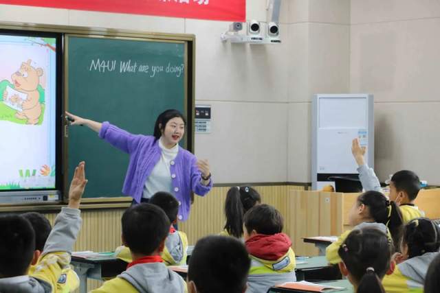 最后,活泼热情的二年级郭梦笛老师为大家带来了《What are you doing?》一课。在“I'm dancing. I'm running”的歌声和舞蹈中开启了课堂。课堂上气氛活跃,“开火车”、“角色扮演”等游戏使孩子们热情高涨,都积极参与到课堂的每个环节中来,与郭老师进行各种互动。通过边游戏边练习,孩子们掌握了“drink”“talk”等单词,并学会了运用“What are you doing”来询问对方在做什么。最后,孩子们在欢乐的“击鼓传花”游戏中结束了这堂愉快的课。