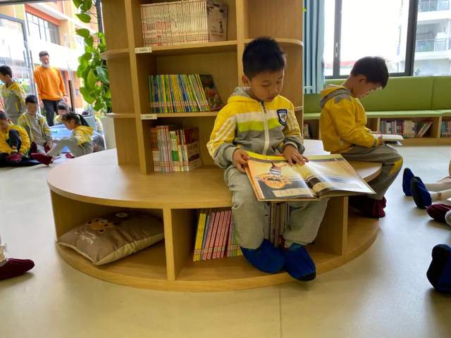 双流实小外国语学校“百味书屋”吸引着一年级孩子前来阅读,一缕又一缕的书香飘进了一颗又一颗的童心。这里,环境幽雅安静,书籍种类繁多,为孩子们创造了一片真正专属于他们的阅读天地。