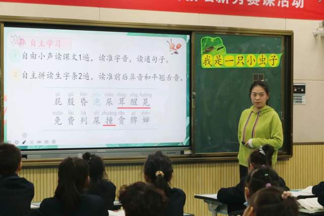沈琪老师和2.6班的孩子们为大家带来的是二年级下册《我是一只小虫子》第一课时预习导学课的精彩展示。沈老师以虫鸣的视频导入,激发孩子们的学习兴趣,孩子们都纷纷化身为一只只积极活跃的小虫子。接着,沈老师大胆放手,让孩子们畅所欲言,并且利用多种已学识字方法自主识记生字。比如,有的编儿歌,有的猜字谜,每一个都生动有趣,让沈老师情不自禁地为他们点赞。