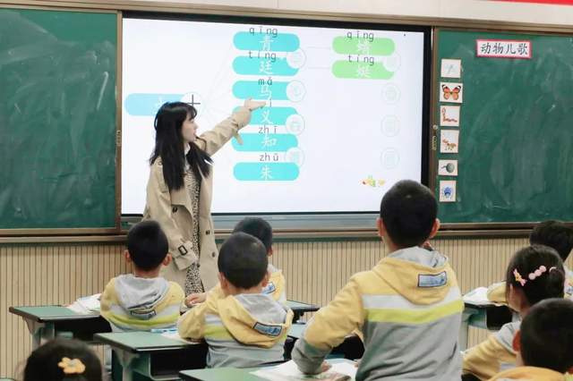 首先是刘燕老师和1.3班的孩子们给大家带来《动物儿歌》。一开课,刘老师便出示了学习目标,让孩子们带着目标学习本篇儿歌。随后刘老师通过让孩子们圈出儿歌里的小动物,观察这些动物的名字的特点引出形声字的构字规律。最后通过个别读、男生女生比赛读、全班齐读、和老师对问读等多种方式让孩子发现本篇儿歌的句式特点,孩子们也能轻松地创编儿歌。整节课目标清晰,层层递进,刘老师那充满儿童化的语言一直紧抓着孩子们的心,让孩子们在快乐的学习氛围中习得了知识。