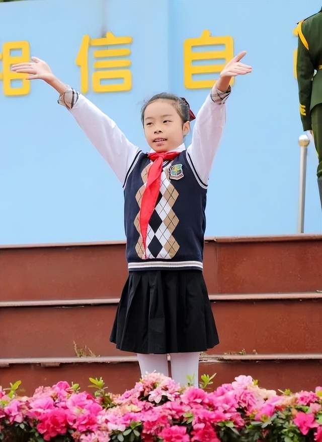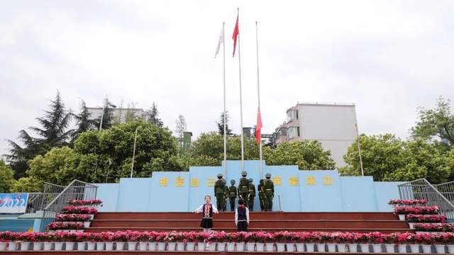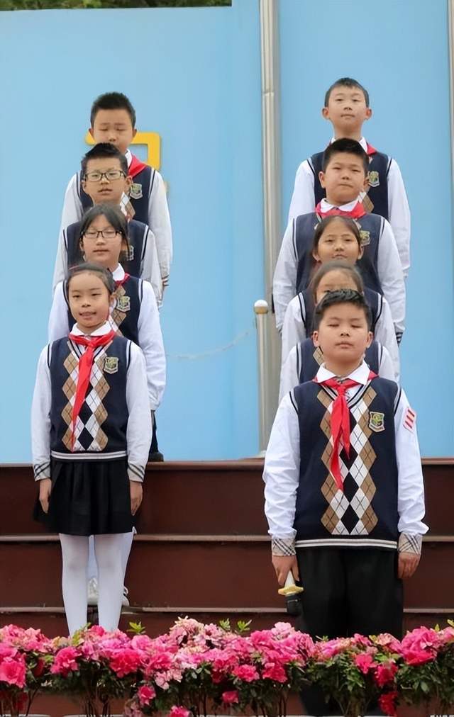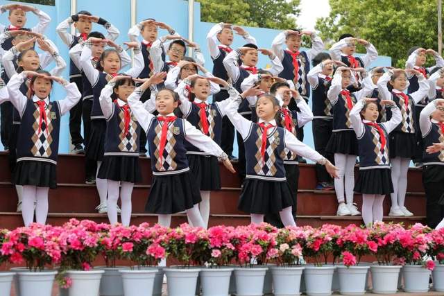 全体师生立正行注目礼,在《义勇军进行曲》的声调中,他们看到,五星红旗如同朝阳缓缓升起。
