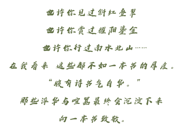 读书是一种生活方式,可以让人经历书中的草长莺飞,繁花似锦。我们可以在书中与文震亨“眠云梦月,长日清谈”;与李清照“赌书消得泼茶香”,闲趣度日;与郝思嘉乐观面对战争的消磨,积极坚强。