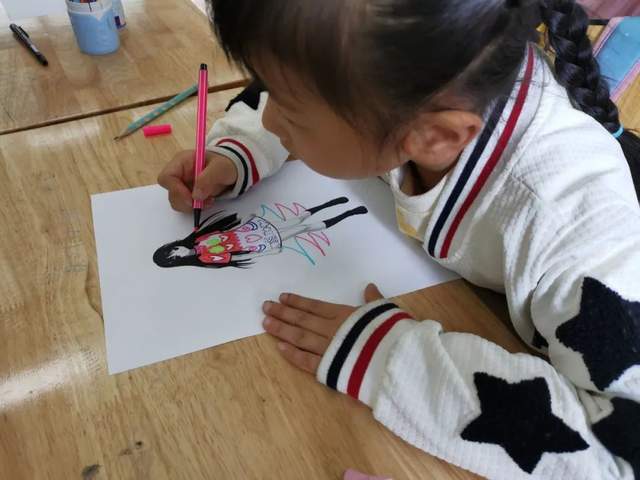 春日富有活力充满着希望,百花齐放,色彩斑斓。春分节气,主要表现三种主要色彩,分别是植树造林的绿,燕子筑巢的黑白,樱花烂漫的粉。用这三种主要的节气色彩设计的春装!孩子们发挥丰富的想象力,设计出了男女服装的各种款式,通过学习了节气色彩的搭配和运用,绘出春日的鲜艳与美好,体验绘画与设计的快乐!