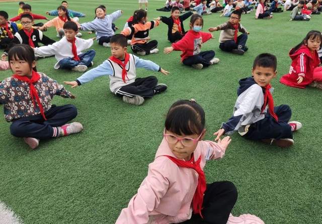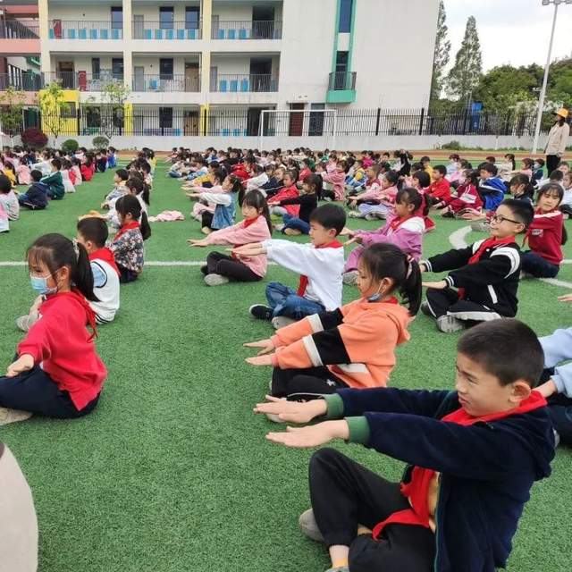 大课间孩子们学习春分节气动作引导口诀和动作: