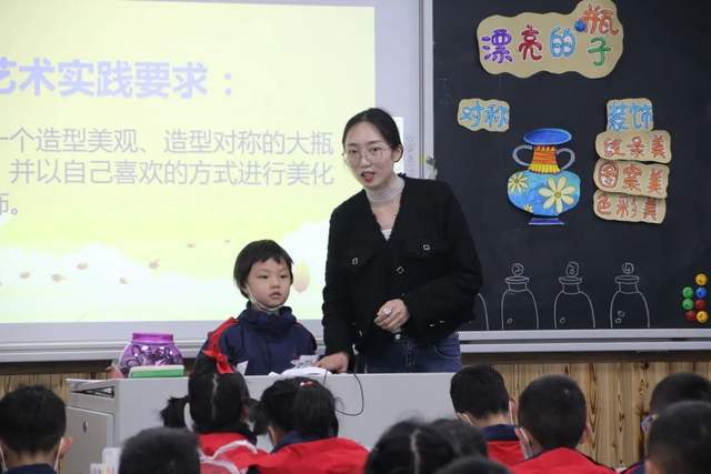 川大西航实小“刘雨林工作室”的青年老师白麟翼以研究课《漂亮的瓶子》开启活动序幕。白老师带领一年级的孩子们走进奇妙的瓶子博物馆,观察与感知瓶子在造型、色彩、线条、图案装饰上的形式美。教学中,白老师用亲切的语言创设了轻松愉悦的课堂情景,教学环节紧扣目标,学习支架的搭建合理有效,知识理论与实践操作联系紧密。课堂中,孩子们以瓶子的设计为题,学习了对称剪纸和装饰绘画的综合表现手法。在有限的课堂实践中,孩子们加深了对美的认识与理解,勇于探索,乐于创造,设计制作出许多个性鲜明、富有创意的作品,美术学科素养得到了有效的提高。