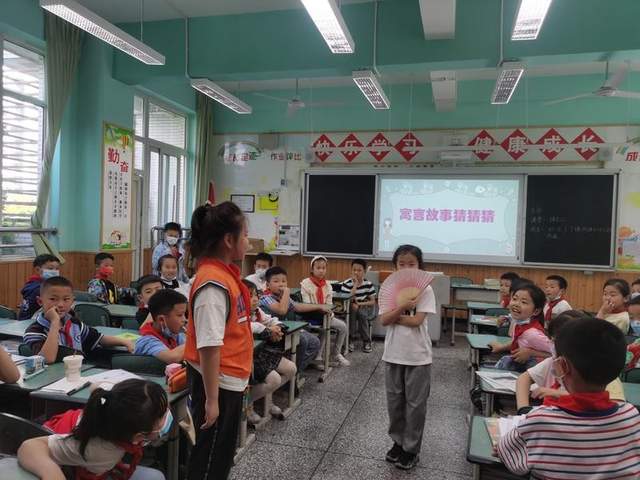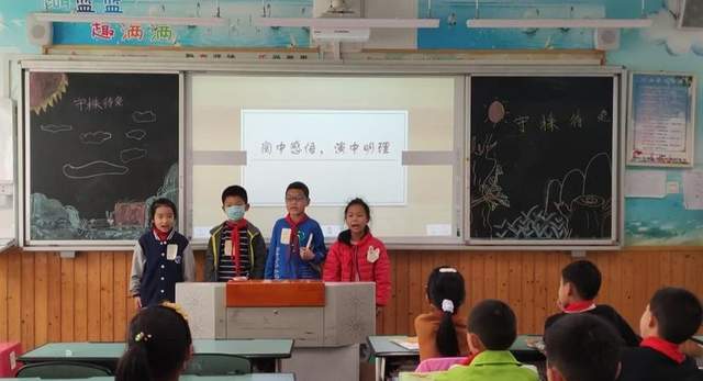 这边的把书中的故事“猜一猜”“演一演”的方式展示给大家,让学生兴致盎然,把读书的气氛推向了高潮。欢乐的气氛让他们收获了知识,故事中的寓意定深深地印在了他们的脑海,给予他们生活的智慧。