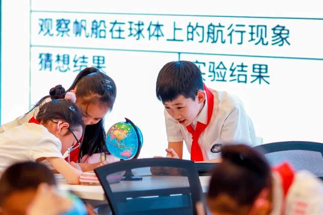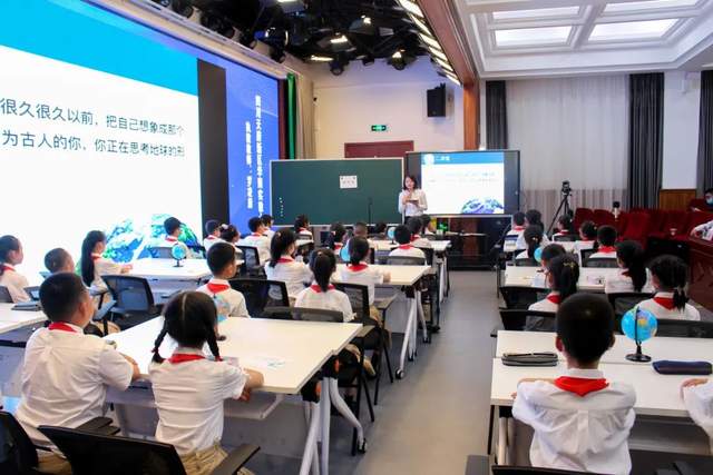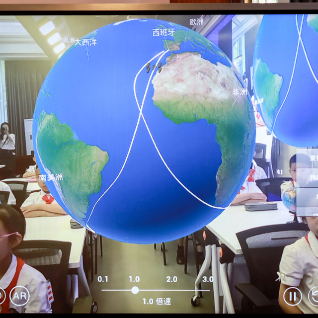 罗凌蔚老师的科学课《地球的形状》,将《麦哲伦航海》、《月食》、《模拟飞机航行》、《太阳系》等四个AR场景交替使用。师生们使用AR技术开发课程资源,进行模拟实验,通过AR还原了月食的发生。师生们跟随麦哲伦带领5艘远洋海船完成了人类首次环球航行。AR模拟飞机飞行,看到飞机朝同一个方向飞行,最后能回到起点。师生们在外太空,一窥地球那圆形不停自传公转的真容。罗凌蔚老师带领学生一起,上天入海,穿越500年,与古人一起证明地球的形状是圆的,让学生们提升观察、认证的能力,感受科学真理的探索是曲折漫长的。