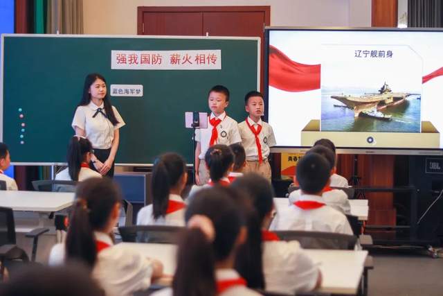 AR德育的课堂融合,实现了全国零的突破。陈菲老师的班会课《强我国防 薪火相传》,以81192王伟烈士的故事缓缓展开,通过学生分小组展示课前学习成果,适时融合AR增强现实技术将我国第一艘航空母舰-辽宁舰呈现在教室中,从舰载机的起飞巡航,到发现非法入侵者的迅速精准击中目标,无不让在场师生深切感受到如今我国海军实力的日益强盛。之后,在学生讲述星辰大海的中国航天梦时,融合AR技术将嫦娥四号,这一人类探测器首次登陆月球背面的历史性时刻再现,震撼全场,此刻,是身为中国人的骄傲与自豪!同时,先辈们不畏牺牲、艰苦奋斗、自主创新的精神感染着在场师生。《强我国防 薪火相传》主题班会,融合AR技术的生动再现,使学生深刻认识到我国国防建设如今取得的伟大成就和背后的艰辛历程,个人命运和国家命运紧密相连,提高国防意识,激发爱国热情。