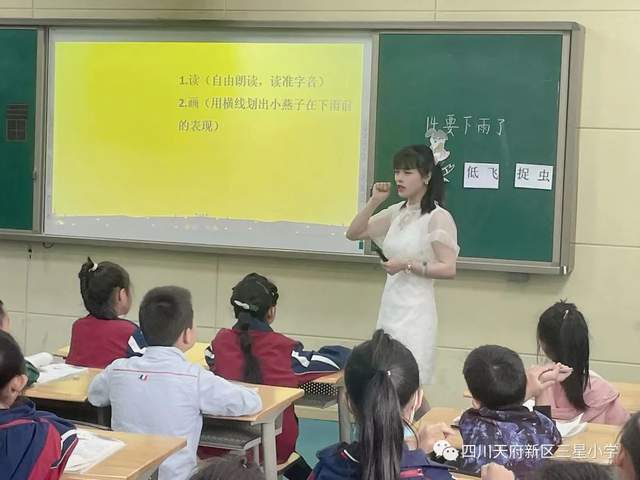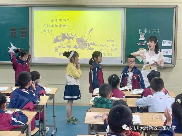 最后,学生们在杨老师的引导下发散思维,利用自己的生活经验思考:还有哪些小动物在下雨前会有特别的表现?孩子们纷纷开动脑筋,在这愉快的课堂环境中积极发言,感受语文课堂带来的乐趣。