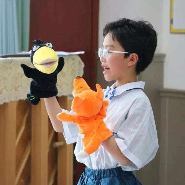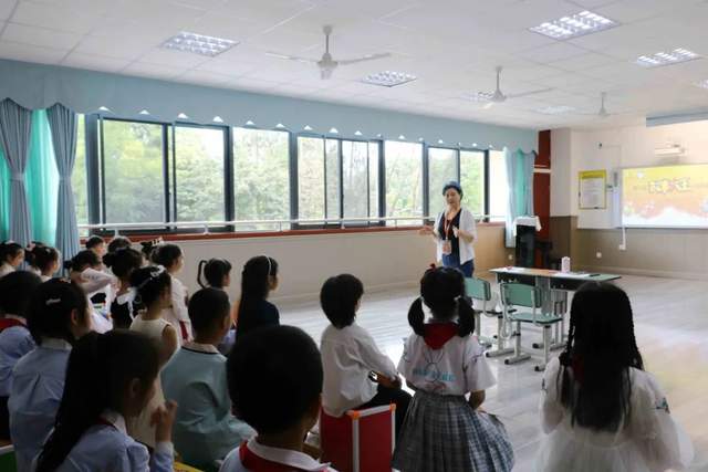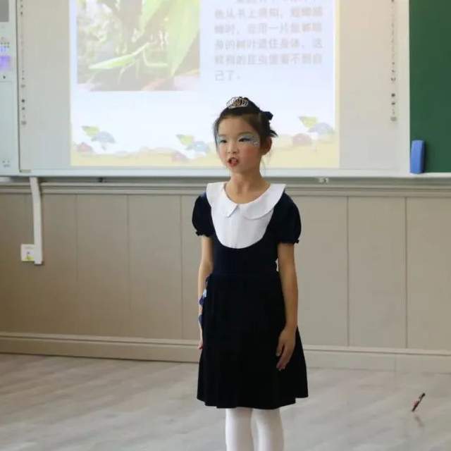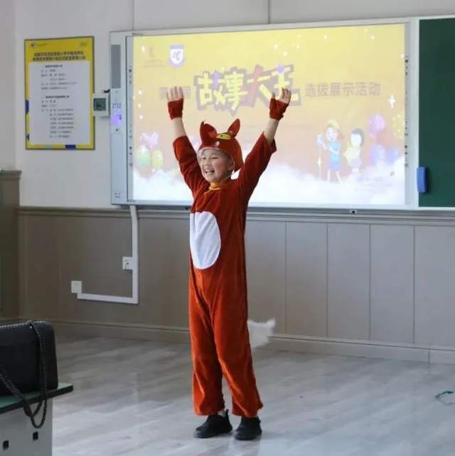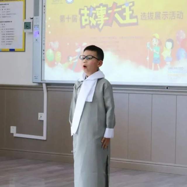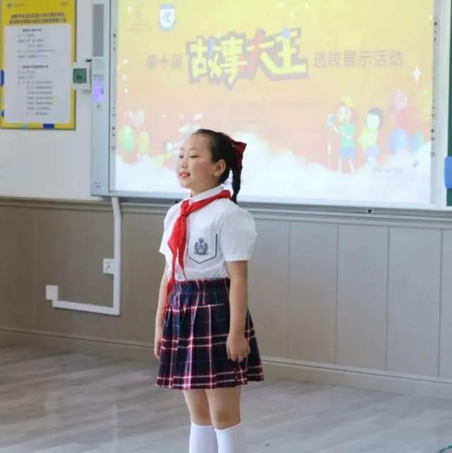 三年级活动现场的孩子们自信大方,侃侃而谈。他们的姿态自然,情绪饱满,绘声绘色地演绎着故事。
