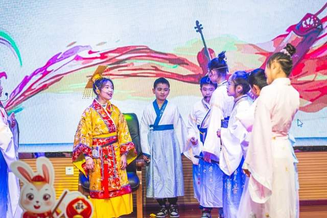 在溢雅厅主会场精彩演出的同时,教室里的孩子们在老师的有序组织下,通过腾讯会议实时收看溢雅厅演出实况直播。溢雅厅里精彩连连,各班教室里掌声不断。