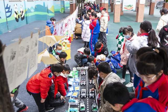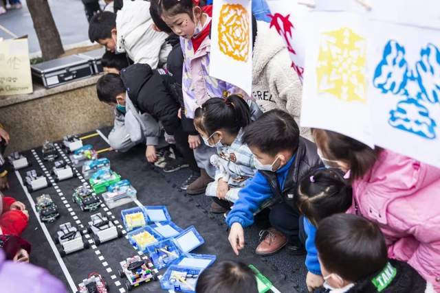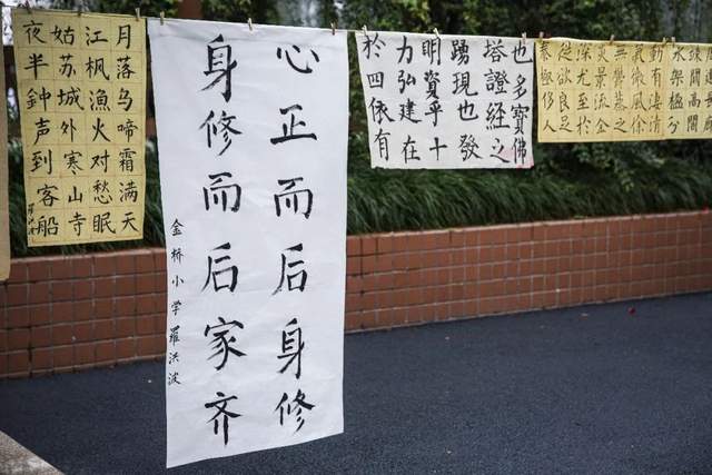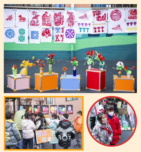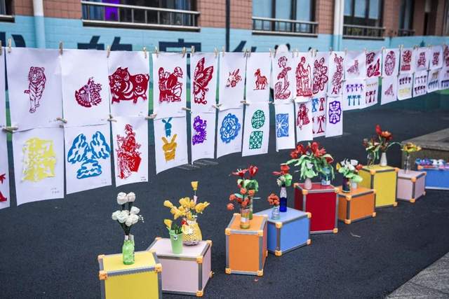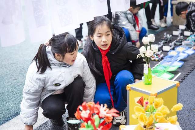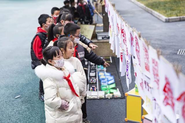 在这个冬日里,金桥小学的户外也同样欢乐!乡村少年宫社团优秀作品展示正在校园里同步进行。展示区摆满了来自书法、剪纸、美术、石头画、镶嵌画、科创等社团的孩子们精心创作的作品。