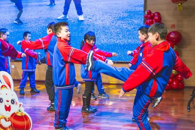 回旋踢、横踢、侧踢……他们出腿凌厉,动作潇洒,展现出金小娃们的虎虎生气。