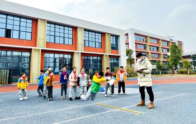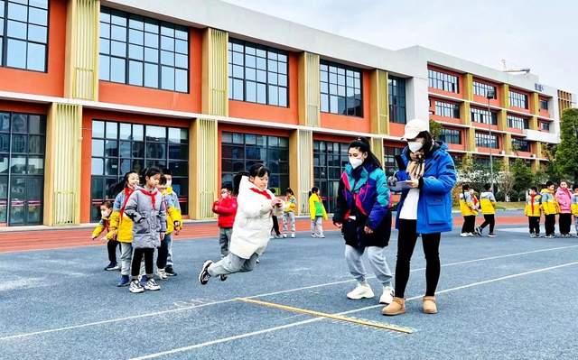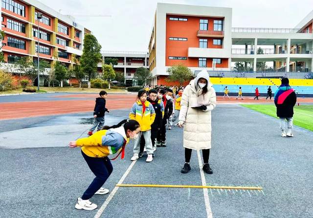 立定跳远测试中,孩子们个个精神专注,