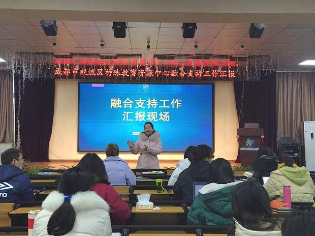 1月4日上午,双流区特殊教育资源中心全体教师齐聚多功能厅,聆听融合支持组教师本学期融合支持工作汇报。双流区特殊教育资源中心将融合支持教师划分为五个小组,以小组包片巡回指导模式推进融合教育工作,服务对象包括双流区义务段中小学和学前有需求的幼儿园。