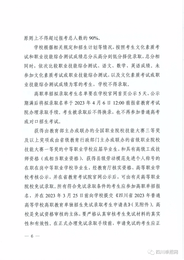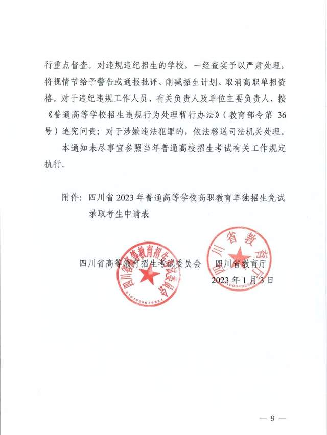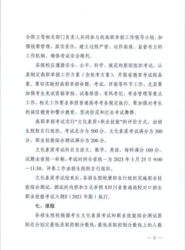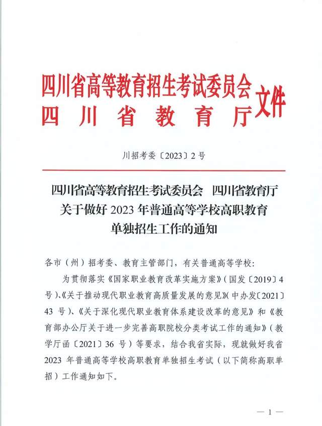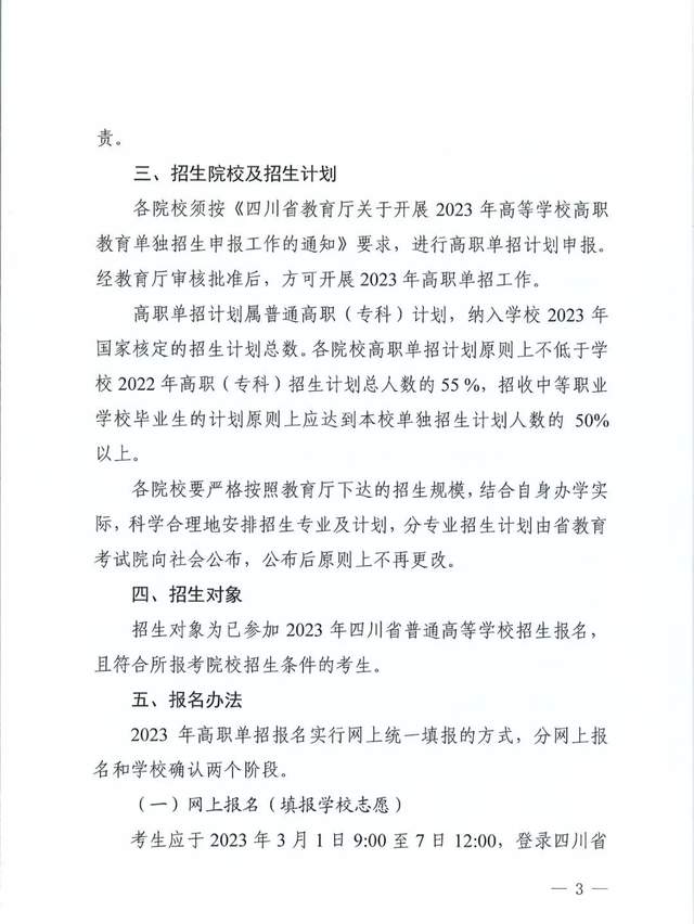 根据四川省高等教育招生考试委员会、四川省教育厅近日发布的《关于做好2023年普通高等学校高职教育单独招生工作的通知》,3月1日起网上报名通道开启,全省统一考试时间为3月25日。