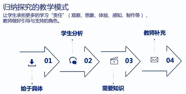 在课堂中,教师通过归纳探究的教学模式,让学生承担更多的学习责任,去观察、想象、体验、感知和制作,教师做好引导与支持的角色。斯宾塞说:“教育中应该尽量鼓励个人发展的过程。应该引导儿童自己进行探讨,自己去推论。给他们讲的应该尽量少些,而引导他们去发现的应该尽量多些。”