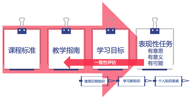 基于国家课程标准,转化为教学指南,确定每一个适合孩子的学习目标,进而设计有意思、有意义、有可能的表现性学习任务,让孩子在完成学习任务的过程中不断调用已知、学习新知,以形成每个人不一样的个人知识系统。整个表现性任务,又完成了一致性评估,到最后检验新课标是否落地,所有目标是否在学习任务中可被评估。