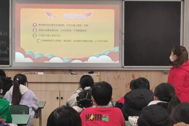 最后,老师们强调了在寒假期间的安全。如:燃放烟花爆竹、防火、防骗、防抢、防盗、防食物中毒、防踩踏事故、防人身伤害、防性侵、意交通、个人防护等规则及注意事项。孩子们认真聆听,表示一定会注意安全,保护好自己。