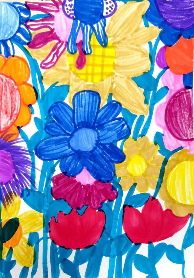二年级《茂密的花》也是百花齐放。一幅幅斑斓的画作,使人忍不住想要跳进孩子们花丛的世界~真是太棒啦!