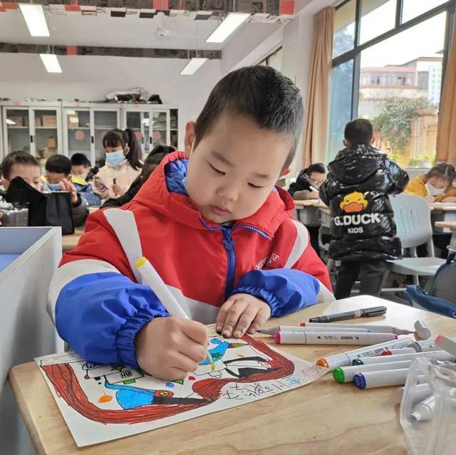 三年级《红色的画》让孩子们感受到了红色在日常生活中运用的场景,也了解到红色对于中国的意义。