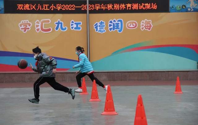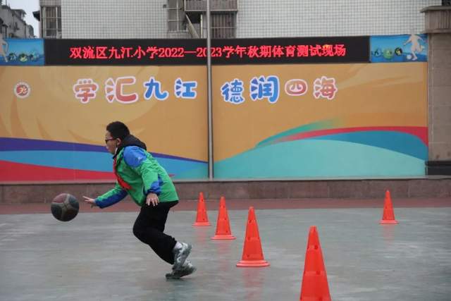 为检验一学期以来体育教学成果,了解学生体育素质发展状况,12月28日,九江小学在运动场进行了四、五、六年级体育期末测试。孩子们情绪高昂、神情专注,认真做好每一个动作。