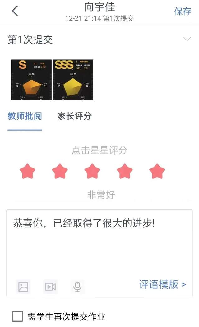 新颖的测评方式,不仅简单易操作,也大大激发了学生的挑战欲望。
