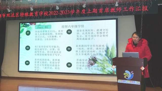 腊梅飘香,正是一年收获盘点时。2023年1月4日上午,成都市双流区特殊教育学校的老师们济济一堂,齐聚学校多功能厅,盘点本学期班级教育教学工作。