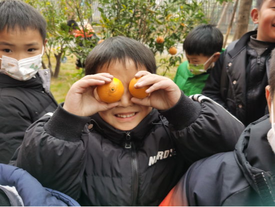 采摘活动开始前,老师带领学生重温柑桔种植的基本知识,耐心讲解采摘柑桔的正确方法和采摘过程中要注意的安全事项。在认真学习安全须知和技巧后,同学们个个精神抖擞、热情高涨,带着准备好的采摘工具,等着一会儿大显身手!采摘活动在“快乐、温馨、健康、和谐”的氛围中开展着,按照分组协调分工,你剪我装,看着手里一个个黄澄澄、犹如小灯笼般的桔子,孩子们爱不释手。橘子树下,丰收的硕果压弯了树枝,孩子们脸上荡漾着快乐的笑容,体验着劳动的乐趣。大家难掩兴奋的笑容,充满着温馨和愉快。