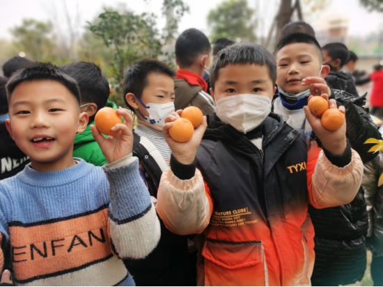 活动结束后,采摘小组的队员们将采摘下的柑桔分发给班级的同学和老师们,大家一起品尝自己的劳动成果。