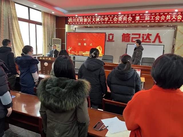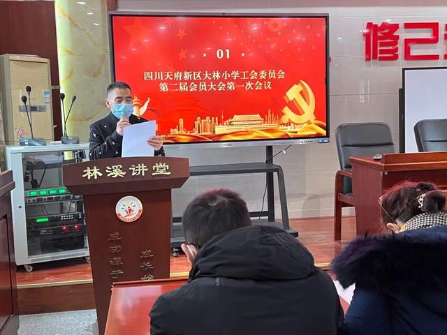 为坚持民主管理,促进学校和谐发展,2023年1月3日,四川天府新区大林小学工会委员会第二届会员大会第一次会议在学校会议室举行。