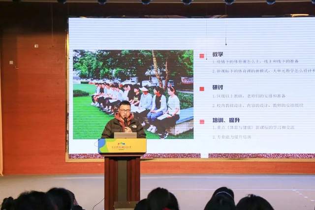 曾成勇体育研修坊导师——曾成勇老师从教学工作、教师个人能力发展、科研能力发展、获奖情况这四个方面进行了汇报。在学·练·赛视野下,培养小学生体育品德的实践研究课题引领下,通过常规课堂,制定有体育品德教案设计体现研究,在学中练,练后再赛,渗透体育品德,从而提升学生的意志品质。通过组织有体育品德的主题活动,强化学生在这方面的认识,不断提升学生体育品德。