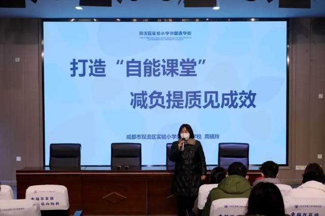 接着邀请周晓玲校长做专题发言《构建“自能课堂” 减负提质见成效》。周校围绕学校着力构建的“自能”课堂给老师们做分享。自“双减”出台,学校本着以“小切口”促发“大变革”,以“抓焦点”促使“提质量”的思路,以“五变行动”为抓手,扎实落地实施双减政策。所谓“五变行动”即以理念变新为先导,破除旧思促变革;以课堂变革为核心,转变方式培学能;以课程变趣为路径,丰富内容强素质;以作业变身为载体,落实减负提质量;以评价变样为动力,激励内驱助成长。
