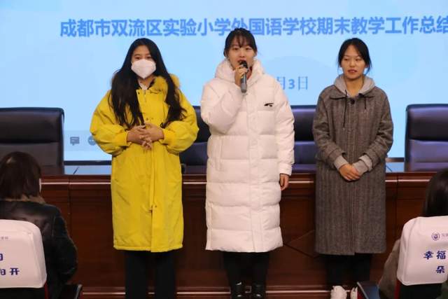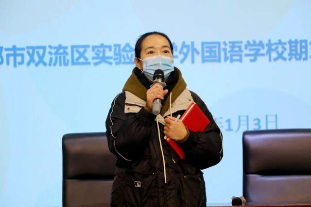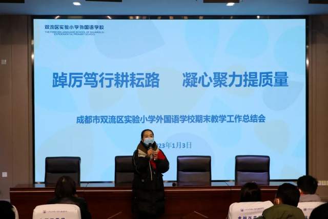 2023年1月3日,成都市双流区实验小学外国语学校召开了期末教学工作总结会。会议由白主任主持,她首先向全校教师送上新一年的问候,接着向大家介绍了三位新老师,新老师的加入让学校更有活力。