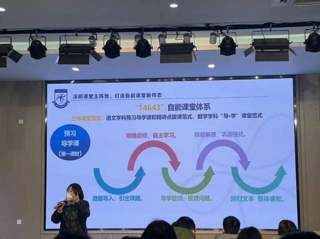 “双减”的“减负”是为了“增效”,最核心的目标就是提高课堂教学的质量。课堂是学校质量发展的生命线,课堂是师生幸福生长的基地。因此,学们采用“自主备课—借班试教—研讨修改—再度试上—重新调整—展示辐射”的课堂教学研究模式,以“校长预约课、亮相合格课、参赛提升课、同伴互助课、校际联动课、区级研究课”的“六课”为载体,在观课中反思,在反思中研究,在研究中升华,构建了“14643”自能课堂体系,打造自能课堂新样态,促使课堂教学方式有效变革。