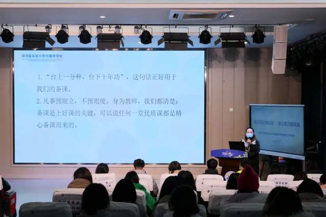 要实现“自能”课堂的优质高效,备课是前提。于是,课堂教学中心白主任做了《精心备课 提升教学》的专题发言。一开讲,白主任先送给老师们两句话:“1.台上一分钟,台下十年功,这句话正好用于假期备课再合适不过了。2.凡事预则立,不预则废。”身为教师,老师们都清楚:备课是上好课的关键,可以说任何一堂优质课都是精心备课而来的。这两句话清晰鲜明地让老师们意识到利用假期备课,提前准备是保障教学质量的根本途径。接着,白主任又从“四备”:备课标、备教材、备学情、备教法与老师们展开分享交流,还列举出优秀学历案让老师们学习。首先学习如何从课标—年段—册次—单元—课时来拟定目标,再根据目标罗列评价任务,围绕目标设计教学活动等,详细的讲解让老师们更加清楚备课的方向。