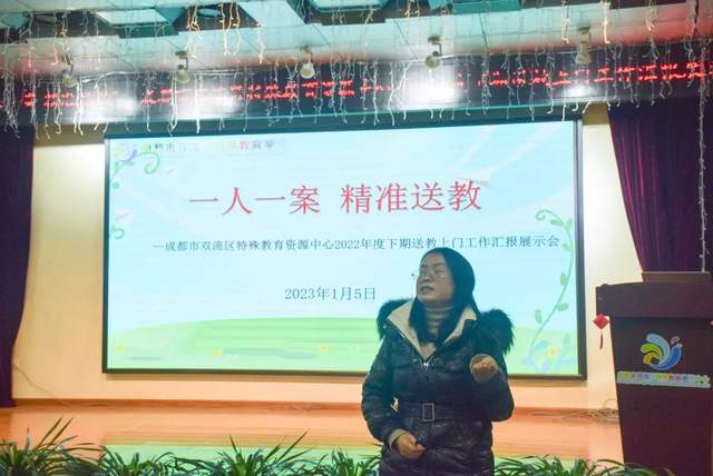 为进一步推进区域特殊教育高质量发展,落实“一人一案”,让每一名残疾儿童少年享有公平而有质量的教育,1月5日,“一人一案 精准送教”——双流区2022年度下期送教上门工作交流汇报会在区特殊教育资源中心(特教校)多功能厅举行。15个送教小组分别对组内送教学生的送教上门工作进行分享交流。